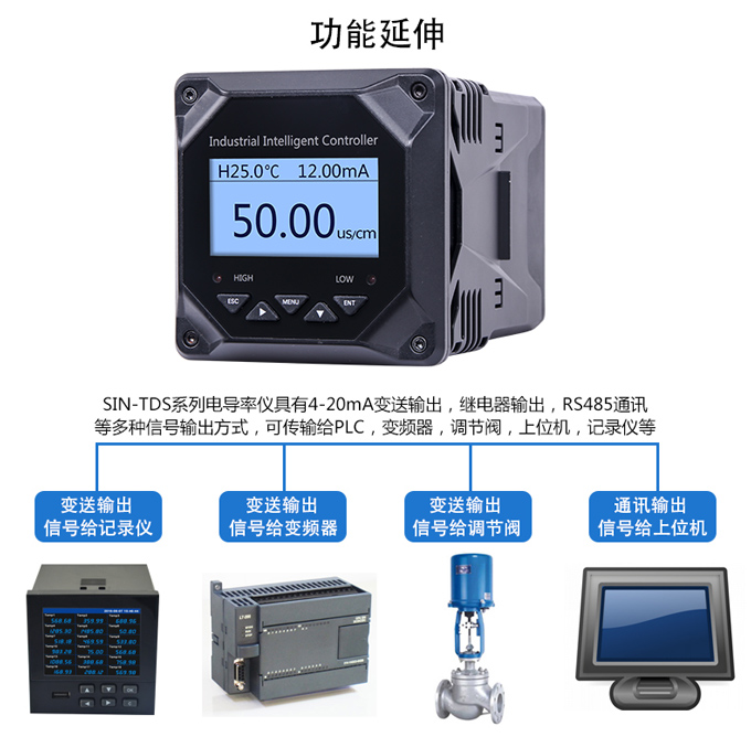 SIN-TDS210工業(yè)電導率儀表,可對各種工業(yè)用水的電導率(TDS)值進行連續(xù)測量和控制,本裝置廣泛應用于科學實驗裝備、化工、制藥、環(huán)保、冶金、造紙、食品、飲料及供水等行業(yè)。根據水工業(yè)的環(huán)境和特點結合國際供電標準,考慮了特殊環(huán)境的電氣設計規(guī)范,增加了220VAC供電。