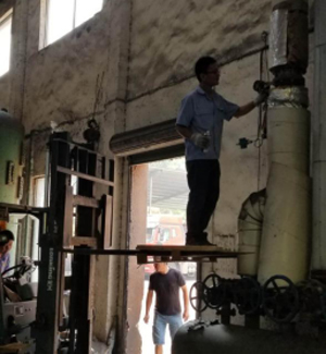 △勞動人民的智慧還是無窮的,現(xiàn)場技術(shù)因為高度不夠動用了叉車。