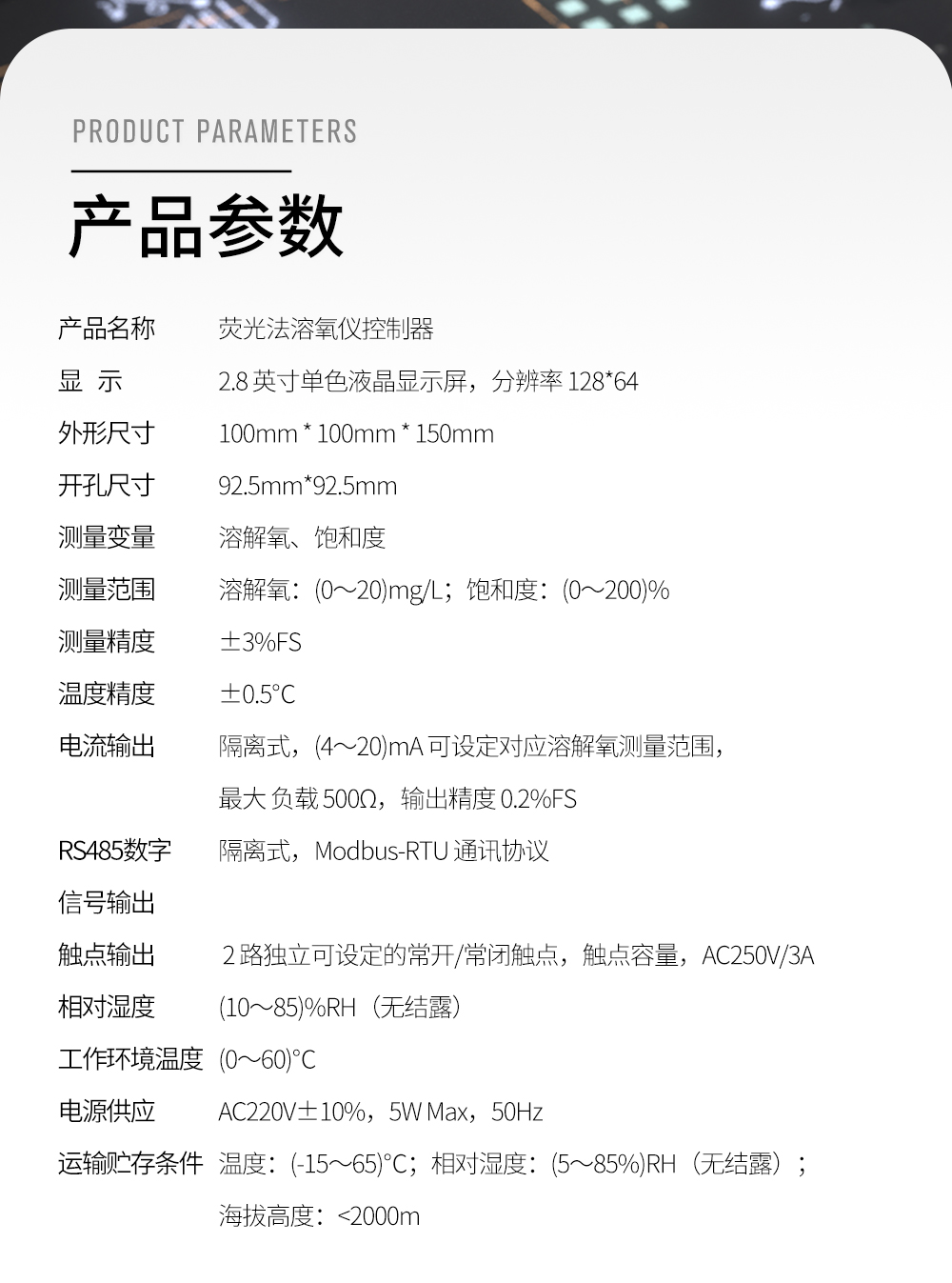 熒光法溶解氧在線(xiàn)分析儀是一款智能在線(xiàn)光學(xué)分析儀器,是一款廣 泛應(yīng)用于火電、化工化肥、冶金、環(huán)保、制藥、生化、食品和自來(lái)水等 溶液中溶解氧、飽和度和溫度的連續(xù)監(jiān)測(cè)的儀表。 連續(xù)監(jiān)測(cè)數(shù)據(jù)通過(guò)變送輸出連接記錄儀實(shí)現(xiàn)遠(yuǎn)傳監(jiān)控與記錄,也可 以連接 RS485 接口通過(guò) Modbus-RTU 協(xié)議可方便聯(lián)入計(jì)算機(jī)實(shí)現(xiàn)監(jiān)控與記錄