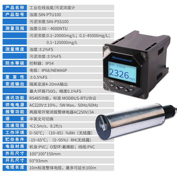 SIN-PTU100在線濁度檢測儀是一款智能在線化學分析儀器之一,基于組合紅外吸收散射光線法的原理,應(yīng)用ISO7027方法可以連續(xù)并精確地測定濁度或污泥濃度。