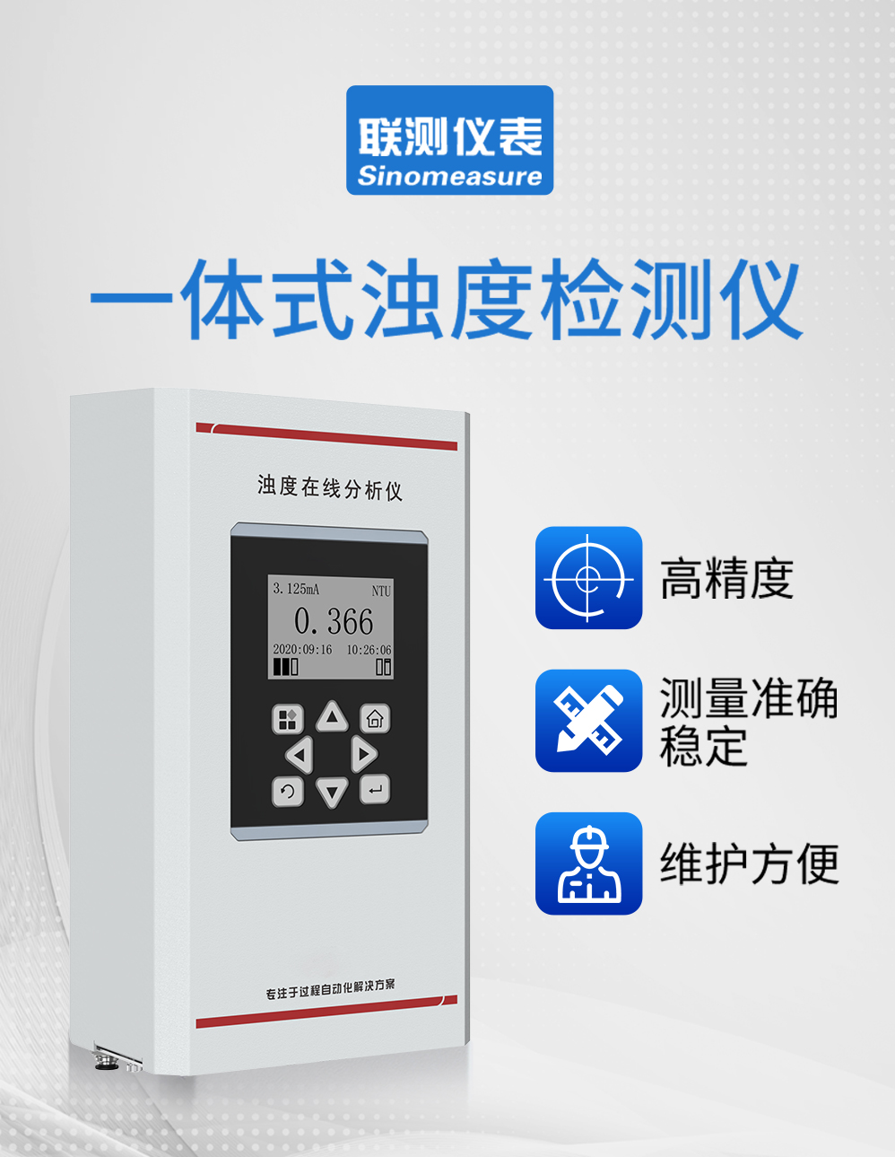 濁度在線分析儀是針對飲用水水質(zhì)在線監(jiān)測,量身研發(fā)的具有自主 知識產(chǎn)權(quán)的專利產(chǎn)品,具有超低濁度檢出限、高精度測量、設(shè)備長時間 免維護、省水工作和數(shù)字化輸出的特點,支持云平臺和手機移動端數(shù)據(jù) 遠程監(jiān)控,以及 RS485-modbus 通訊,可廣泛應(yīng)用于自來水出廠水、二次 供水、管網(wǎng)末梢水、直飲水、膜過濾水、游泳池、地表水等濁度在線監(jiān)測。